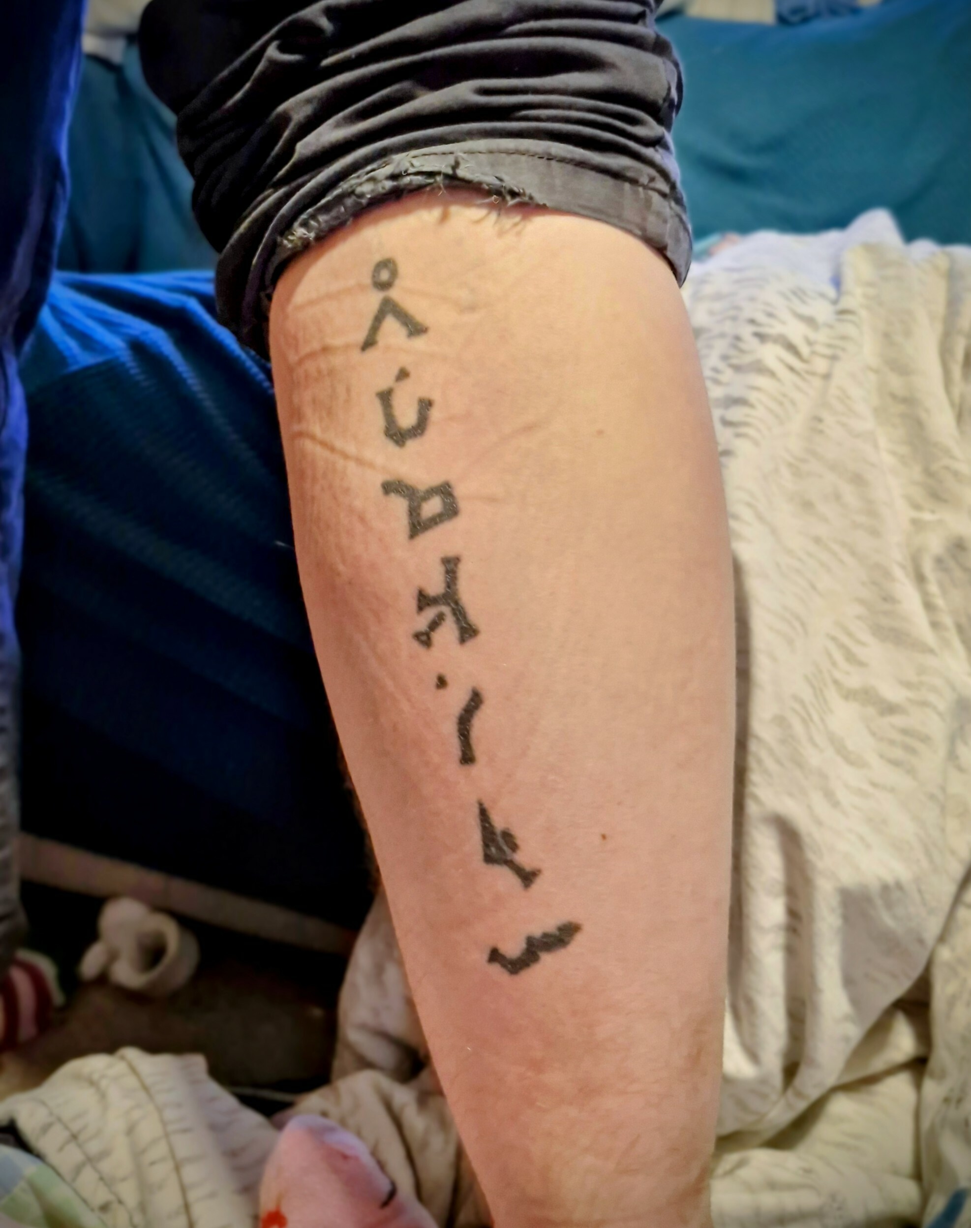 And I have a lot of tattoos some from fandom, a nug from Dragon Age, Reepicheep, Lion from Steven's universe, Psyduck, Snoopy, and the Earth address from Stargate down the back of my right calf.